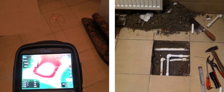 Termal Kamera : Temelde ısıyı esas alan bu görüntüleme cihazı ile kalorifer tesisatı, sıcak su tesisatı gibi sıcak suyun geçtiği boruların yerinin tespit edilmesi için kullanılır. Su sızıntısının tespiti için gerek duyulması halinde termal kamera kullanmaktayız. Termal kamera ile su tesisatının geçtiği alan tespit edilir ve ardından akustik dinleme cihazı ile tekrar gerekli kontroller sağlanır. Böylelikle su sızıntısını noktasal olarak tespit etmiş oluruz.